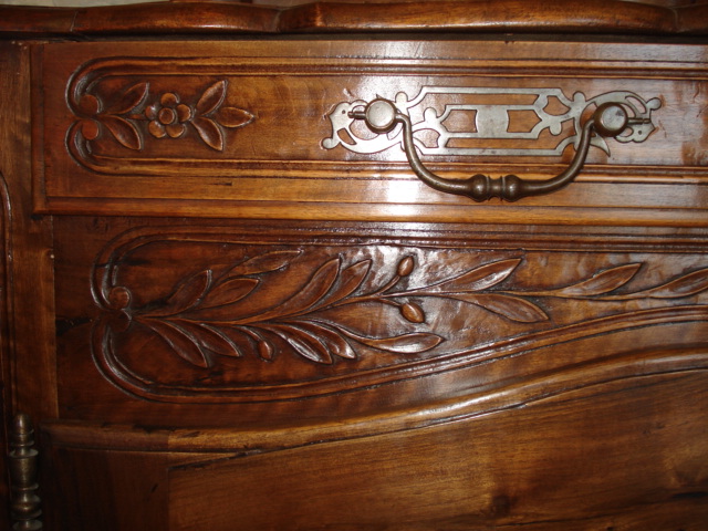 Très riche en sculpture (dans la masse) en raison de son rôle symbolique de MEUBLE DE MARIAGE